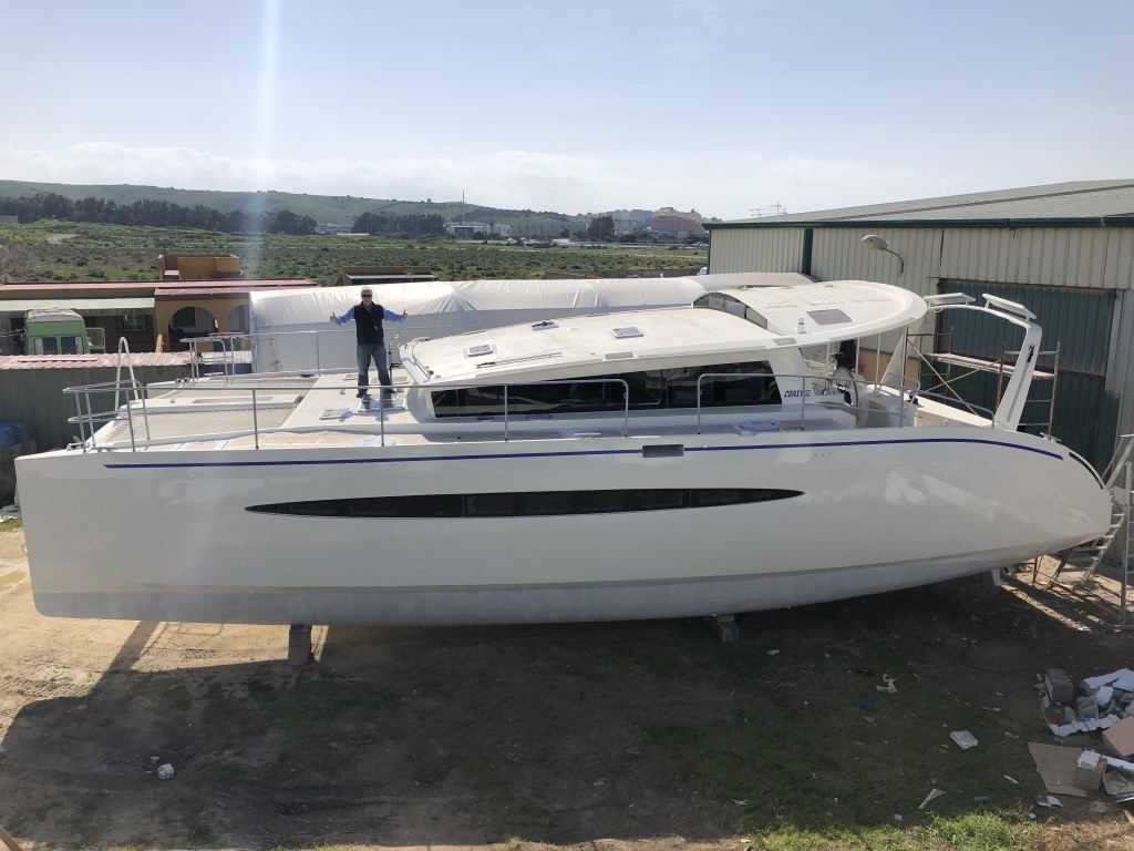 Other aluminium industrial projects exist, such as Prometa’s Banana 465 (heir to the ‘Banana Split’, famously skipped around the world by french singer Antoine), the Ovnicat 48, the New Zealand DVD 52, based on the first DVD 62 experience, or some one-off construction, like the Mint Yard Coast 50, or the Eyecat 55, but they are falling behind Garcia’s.