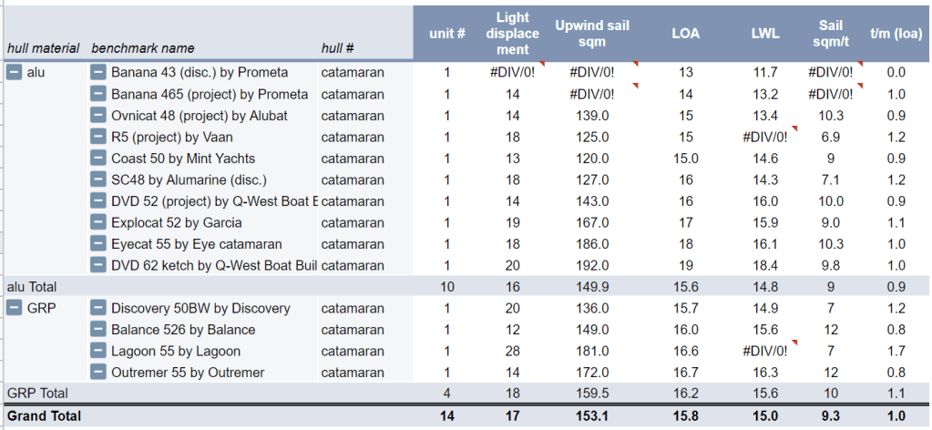 That’s the point, we only focus on the aluminium model, putting aside the high latitude preparation which is always possible for a composite model. So here comes the very limited list of aluminium catamaran we could set our hand on, with some current composite counterpart for benchmarking purpose: