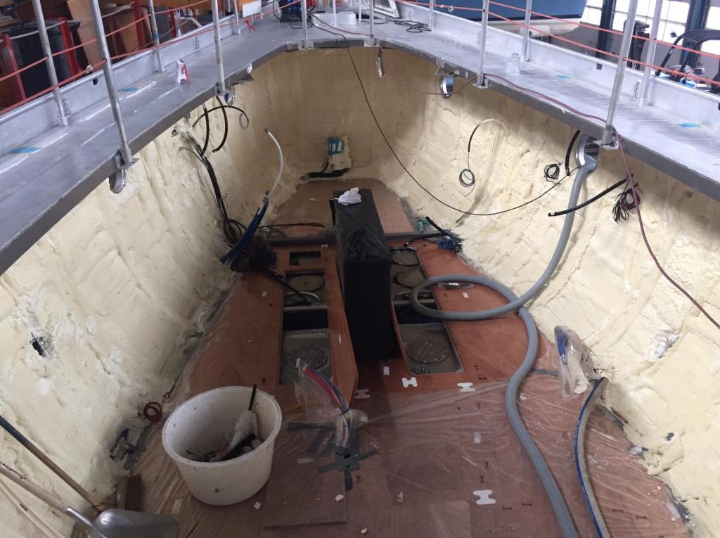 Given the thermal characteristics of aluminium, the area under the cabin floorings will eventually get to a temperature nearing the one of the sea. Although this will never be as extreme as the air temperature, the floor insulation equally needs some insulation attention.