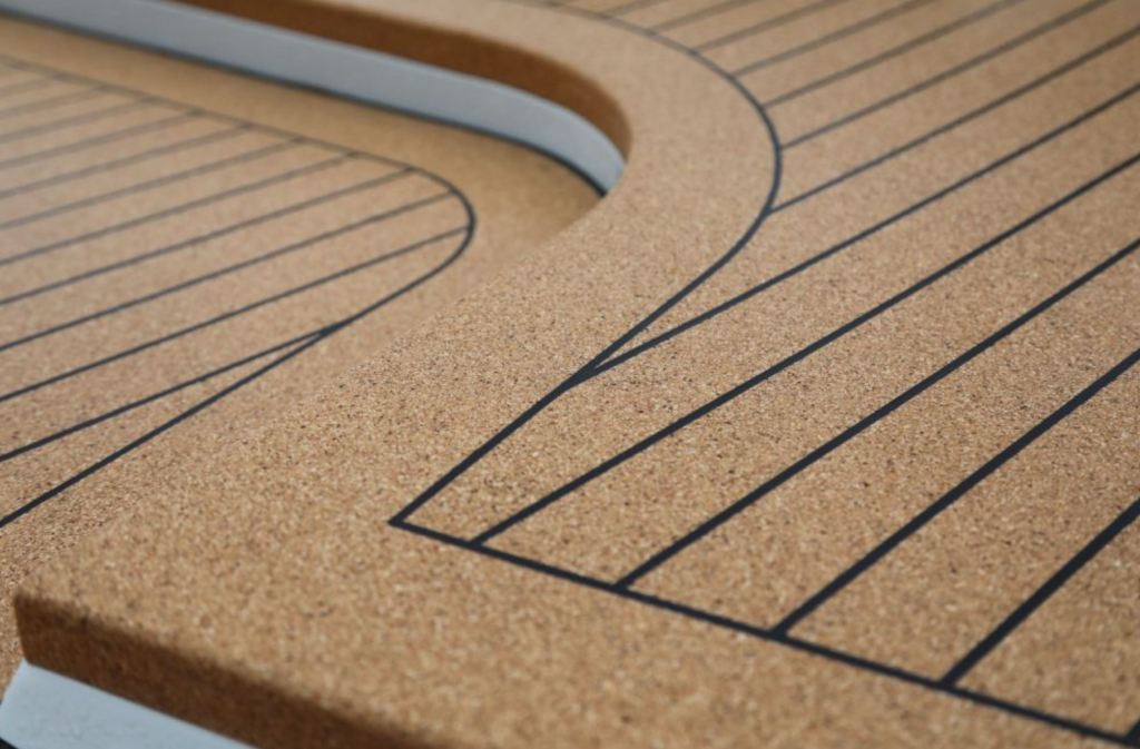 Between a PVC-based material, even of the recycle type, and a natural cork-based one, there is little to hesitate for, especially if you consider its weight. So Marinedeck 2000 will be. It might add 80-100 kg to the global boat weight, but to our eyes, the benefits outmatch this, especially if it makes it unnecessary to add an extra foam insulation layer below deck. And by the way, we love the natural look and feel of it.
