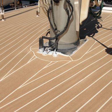 Additionally to this under deck insulation, while most high latitude sailing boats will keep their bare deck aluminium surface just covered with non-slip paint, we’re planning to add a faux-teak surface. At this stage, this is one of these compromises which come for a boat which will not be 100% high latitude. We’re thinking about how a tropical sun shining on an aluminium surface is likely to transform it into a giant radiator, not to speak of the barefoot walking on it.
