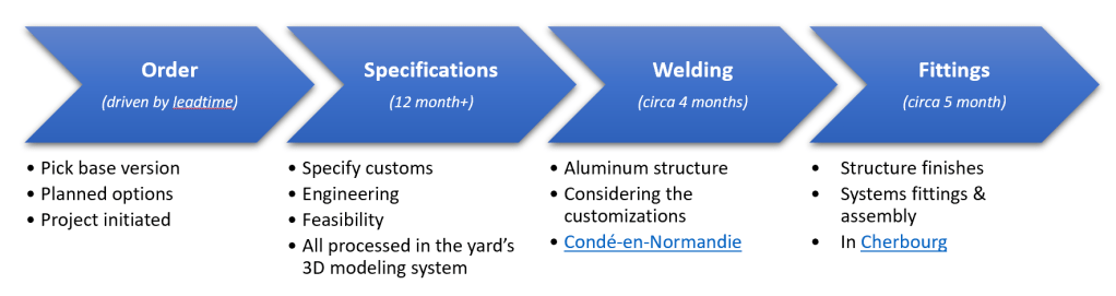 We had to take into consideration the lead-time for this boat. At the time of this conversation, hull #1 wasn’t due in the water for another quarter. We were talking about hull #5, with a lead-time exceeding 30 months, and there was more than one party interested in this hull. Missing this slot would have added 9 months to the planned delivery date, so we did sigh-up for the project pretty fast, and as a matter of fact the hull #6 deal was closed by Garcia a couple of weeks after ours. As far as we know, the lead-time on this boat has now risen to three years, putting the yard in the paradoxal situation where its undeniable success seem to be its main development obstacle.