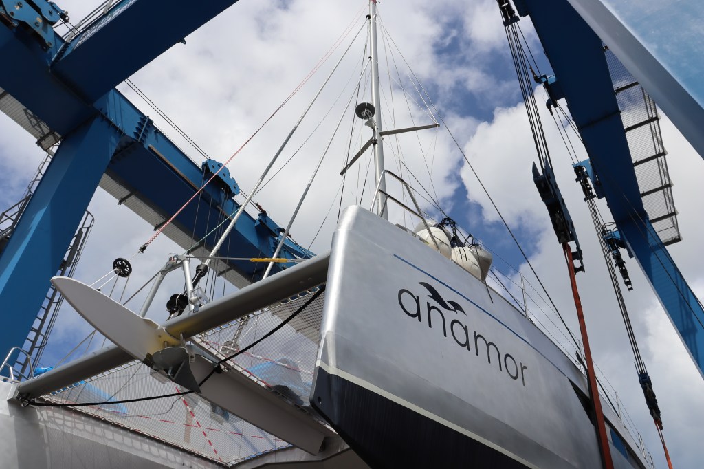 Always an emotional moment when you see her for the first time in her natural element, ready to sail … — well not quite yet everywhere, as advertised by the Garcia yard, but we’re working hard on this with theirs post delivery teams.